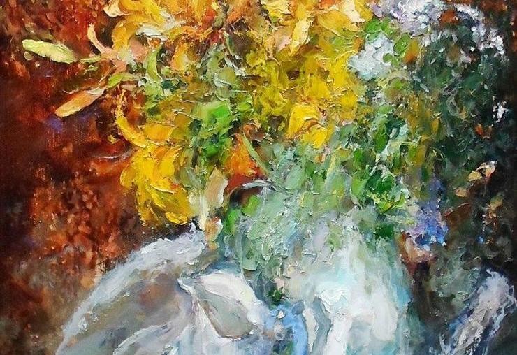 Художник в своем творчестве раздвигает рамки реалистического искусства – обогащает палитру смелыми сочетаниями цветов, достигает разнообразия фактурных решений, создает свою линию повествования.
